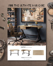 - Leather-Wrapped Legs: The legs are wrapped in dark brown top grain leather, enhancing the desk's sophisticated industrial aesthetic.