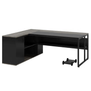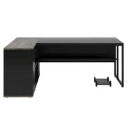 L-Shaped Executive Desk & Cabinet Storage, Office Furniture Set For Home - Gray / Black