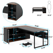 - Spacious L-Shaped Desktop: 71"W x 53"D provides room for dual monitors, laptops, and multitasking
