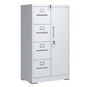 Metal Storage Vertical Filing Cabinet With Lock, 4 Drawers, 1 Door, Steel Construction, School / Office Use