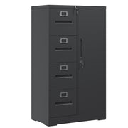 Sleek Metal Storage Vertical Filing Cabinet With Lock, 4 Drawer And 1 Door Steel File Locker For Home Office - Gunmetal Black