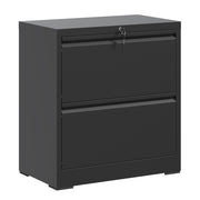Modern 2 Drawer Steel Lateral File Cabinet With Lock For Legal / Letter / A4 / F4 Size - Black