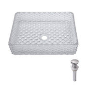 Rectangle Vessel Sink With Diamond Texture With Pop Up Drain (No Faucet) - White