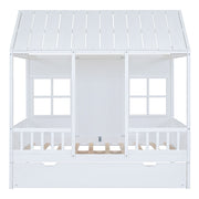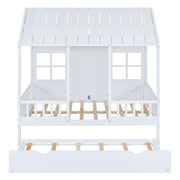 Twin Size House Bed With Twin Size Trundle, Daybed - White