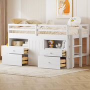 Twin Size Loft Bed With 4 Drawers, Underneath Cabinet And Shelves - White