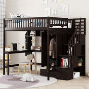 Full Size Loft Bed With Bookshelf, Drawers, Desk, And Wardrobe - Espresso