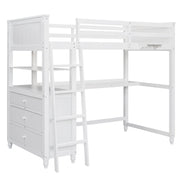 Full Size Loft Bed With Drawers And Desk With Shelves - White