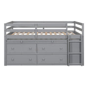 Full Size Loft Bed With Retractable Writing Desk And 4 Drawers, With Lateral Portable Desk And Shelves - Gray