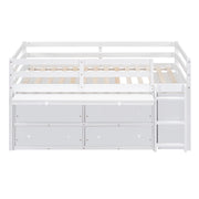 Full Size Loft Bed With Retractable Writing Desk And 4 Drawers, With Lateral Portable Desk And Shelves - White