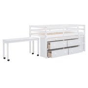 Loft Bed With Retractable Writing Desk And 4 Drawers, With Lateral Portable Desk And Shelves