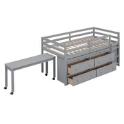 Twin Size Loft Bed With Retractable Writing Desk And 4 Drawers, With Lateral Portable Desk And Shelves - Gray