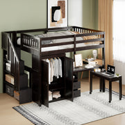 Full Size Loft Bed With Stairs, Bookshelf, Drawers, Desk & Wardrobe, Space Saving Multifunctional Furniture - Espresso