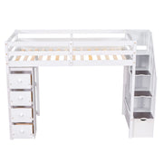Twin Size Loft Bed With Storage Drawers And Stairs With Shelves - White