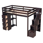 Twin Size Loft Bed With Storage Drawers And Stairs With Shelves - Espresso