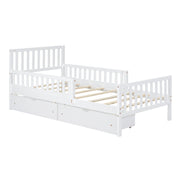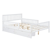 Full Size Platform Bed With Guardrails On Both Sides And 2 Storage Drawers - White