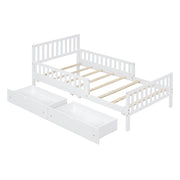 Twin Size Platform Bed With Guardrails On Both Sides And 2 Storage Drawers - White