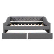 Full Size Upholstered Daybed With Two Drawers, Slat Support - Gray
