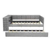 Upholstered Full Size Platform Bed With Storage Shelves, Desk, Charging Station And Trundle - Gray