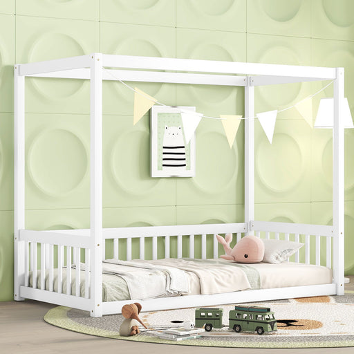 View full detailsUnique Design: Floor bed with wood roof frame encourages imagination and offers space for decorations to enhance sleep and daily activities.Fence f...