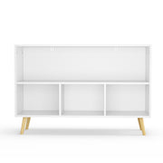 Bookcase With Collapsible Drawers, Book Display Storage Cabinet Organizer - White / Blue