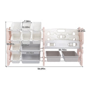 Kids Toy Storage Organizer With 2 Tier Bookshelf And 12 Toy Bins - Pink