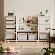 Kids Toy Storage Organizer With 8 Removable Toy Bins, 4 Tier Bookshelf, And 2 Cabinet Storage - Gray / Ivory