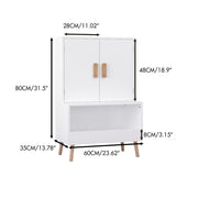 Toy Storage Cabinet With Doors And Open Shelf, Toddler Bookshelf For Playroom - White
