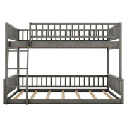 Full Long Over Queen Bunk Bed With Ladder And Guardrails - Gray