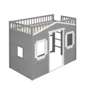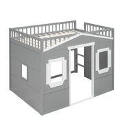 Full Size House Loft Bed With Ladder - Gray / White