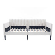 Elena - Twin Upholstered Daybed, Ribbed Backrest - Beige