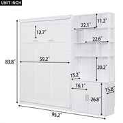 Full Size Murphy Bed With Multiple Storage Shelves And A Cabinet - White