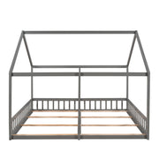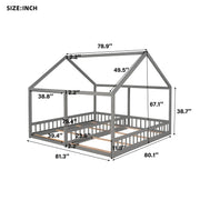 Twin Size House Platform Beds, 2 In 1 Shared Design With Guardrails - Gray