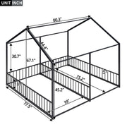Twin Size House Platform Beds, 2 Shared Beds, Frame With Guardrails, Twin Twin Design - Black