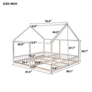 Twin Size House Platform Beds, 2 In 1 Shared Design With Guardrails - White