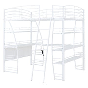 Full Size Loft Bed With 4 Layers Of Shelves And L-Shaped Desk, Stylish Frame With A Set Of Sockets, USB Ports And And Wireless Charging - White