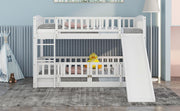 Full Over Full Low Bunk Bed With Slide, Fence And Ladder For Toddler - White