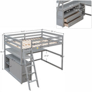 Full Size Loft Bed With Built In Desk, Shelves, And 2 Drawers - Gray