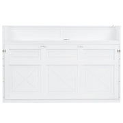 Twin Long Murphy Bed With Desk, LED Light And USB Charging Station - White