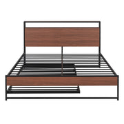 Queen Size Platform Bed Frame With Trundle, USB Ports And Slat Support, No Box Spring Needed - Black