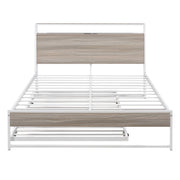 Queen Size Platform Bed Frame With Trundle, USB Ports And Slat Support, No Box Spring Needed - White
