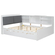 Full Size Platform Bed With Trundle, Shelves, And Storage Headboard - White