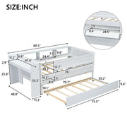 Twin Daybed With Drawers, Trundle, Headboard Storage, Study Desk, And USB Charging Station - White