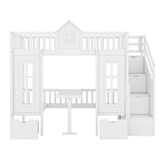 Twin Over Twin Bunk Bed With Changeable Table, Turn Into Upper Bed And Down Desk - White