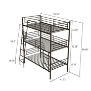 Twin Size Metal Triple Bunk Bed For Bedroom And Dormitory, Convertible Into 3 Separate Beds - Black