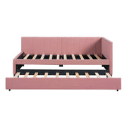 Upholstered Daybed With Trundle Twin Size Sofa Bed Frame No Box Spring Needed, Linen - Pink