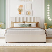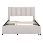 Queen Size Upholstered Platform Bed With 2 Drawers And 1 Twin Long Trundle, Classic Headboard Design - Beige