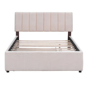 Queen Size Upholstered Platform Bed With Twin Long Trundle - Beige