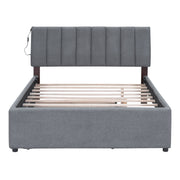 Queen Size Upholstered Platform Bed With Twin Long Trundle - Gray