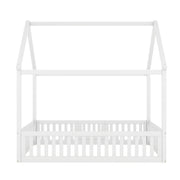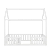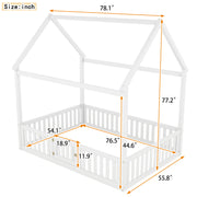 House Shaped Full Size Bed With Fence And Door - White