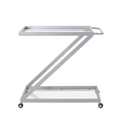 Modern Z Shaped Bar Cart With Tempered Glass Shelves - Silver